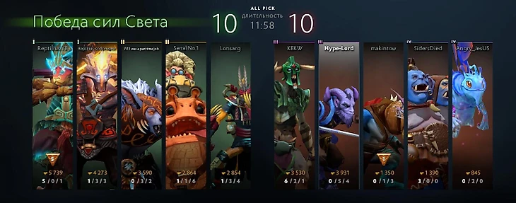 Нашу с Ромой совершенно честную доминацию на линии обесценили еще двое ливеров во вражеской команде – разумеется, исход игры был предрешен. Зато я получил высшую степень комплимента в Доте – от противника.