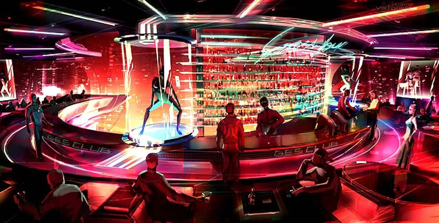 В серии Mass Effect было несколько примечательных баров, но первенство безоговорочно получает «Загробная жизнь». Это залитое розовым неоном местечко, расположенное в сердце преступной космической станции «Омега» – лучший способ оторваться с умеренным риском для жизни. Здесь же можно познакомиться с роковой азари Арией Т’Лоак, которую озвучила сама Керри-Энн Мосс (Тринити из «Матрицы»).