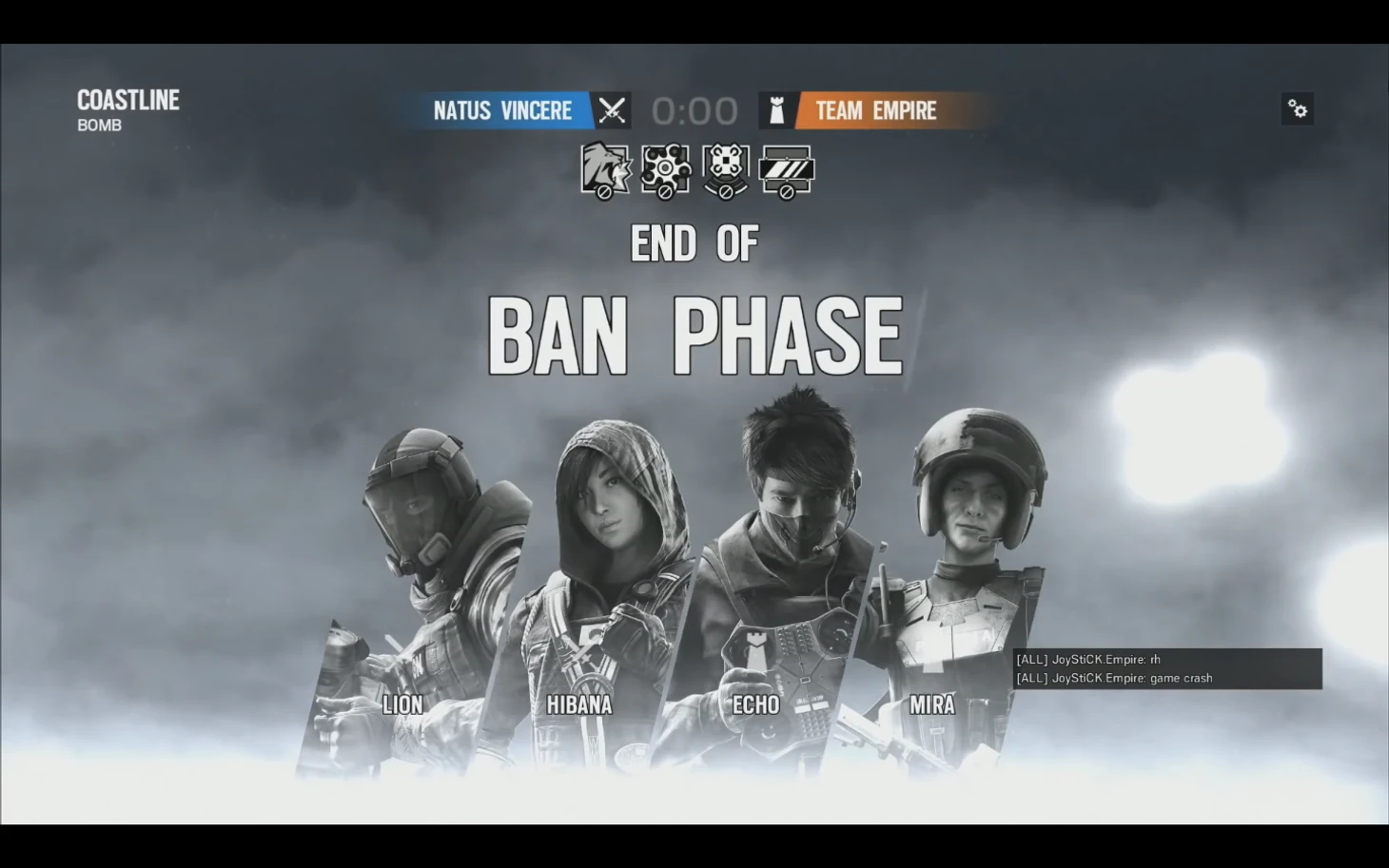 Баны настолько предсказуемы, насколько возможно. Lion не позволил бы Империи много передвигаться по карте, на что они делают большой уклон в своей игре. Hibana на этой карте может быть очень сильной, как мы увидели по ролику Get_Flanked, поэтому тоже ничего удивительного тут не было. Echo и Mira – раздражающие оперативники, с которыми никто не хочет иметь дело.