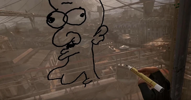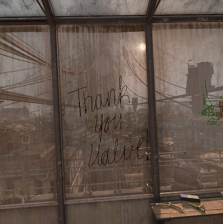 В Half-Life: Alyx игрокам дали возможность максимально правдоподобно взаимодействовать с окружением: главная героиня может передвигать предметы, устраивать эксперименты с реалистичной физикой и искать другие развлечения. В частности, уже в первой комнате можно найти цветные маркеры, а неподалеку от них – грязное окно. На стекле можно рисовать что угодно.