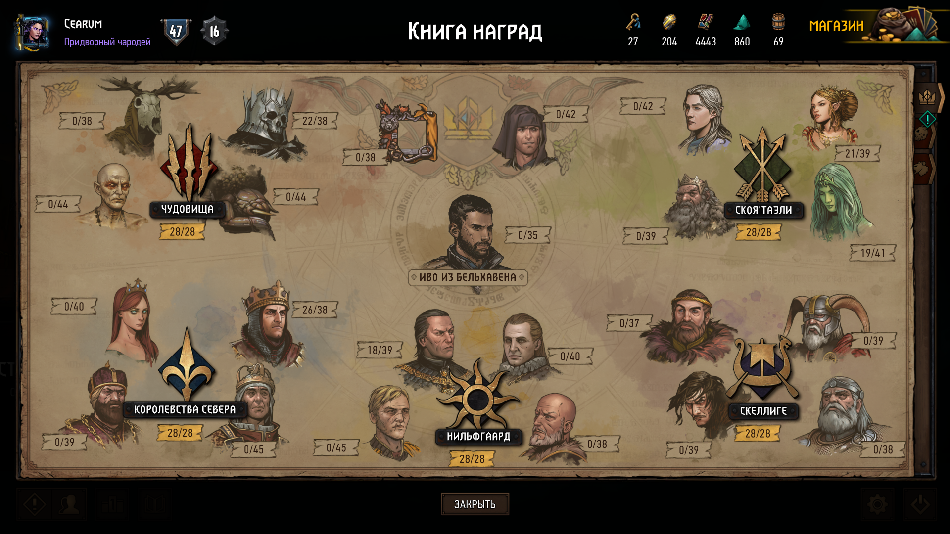 Прогрессия, многими нелюбимая по платным проектам, в Гвинте благоприятна не только по меркам условно-бесплатных игр, но может дать фору играм вроде FIFA. Уже за 1-2 месяца вы без труда соберете значительную часть золотых карт, дающих возможность добиваться результата. К 3-4 месяцам в Гвинте игроки обычно перестают понимать, чего им не хватает, поскольку имеют все основные колоды, требуемые для игры в рейтинге. Через полгода-год у вас будет полная коллекция из всех карт хотя бы в стандартной их версии.