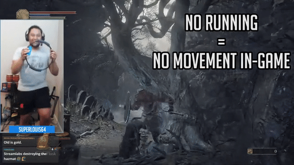 Ютубер Super Louis 64 проходит игры с максимально неподходящими для этого контроллерами (например, он сыграл в мультиплеер Call of Duty: Modern Warfare (2019) на барабанах для ритм-игры и выиграл). В этот раз Луи сыграл в хардкорный экшен Dark Souls 3, используя фитнесс-контроллер от игры Ring Fit Adventure для Nintendo Switch.