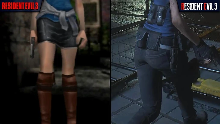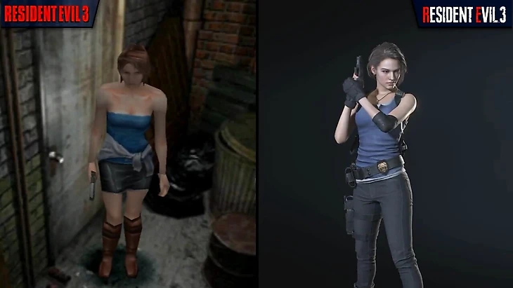 Первое и одно из самых заметных отличий – дизайн главной героини Джилл Валентайн. В оригинале ее нарядили в сексуализированную и максимально непрактичную одежду, в ремейке же она носит куда более удобные и подходящие офицеру полиции вещи в той же цветовой палитре.