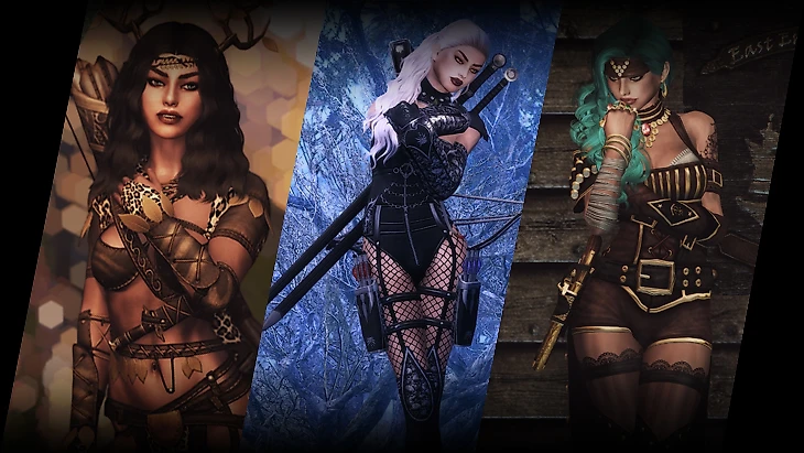 На картинке: броня друида, ведьмачий костюм и наряд дочери морей.