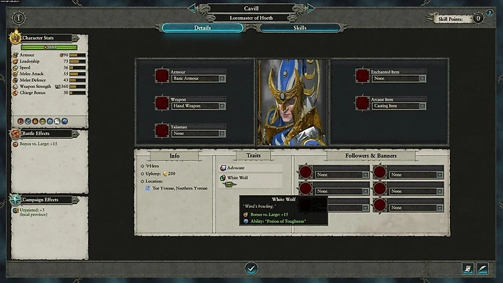 Явная отсылка к британскому актёру Генри Кавиллу дополняется ещё и способностью «Белый волк», которая даёт +15 к атаке против больших противников. А это уже отсылает нас к сериалу «Ведьмак» от Netflix. Ранее актёр уже говорил, что является большим фанатом игр серии Total War и любит «играть, пока не умрёт в ней окончательно».