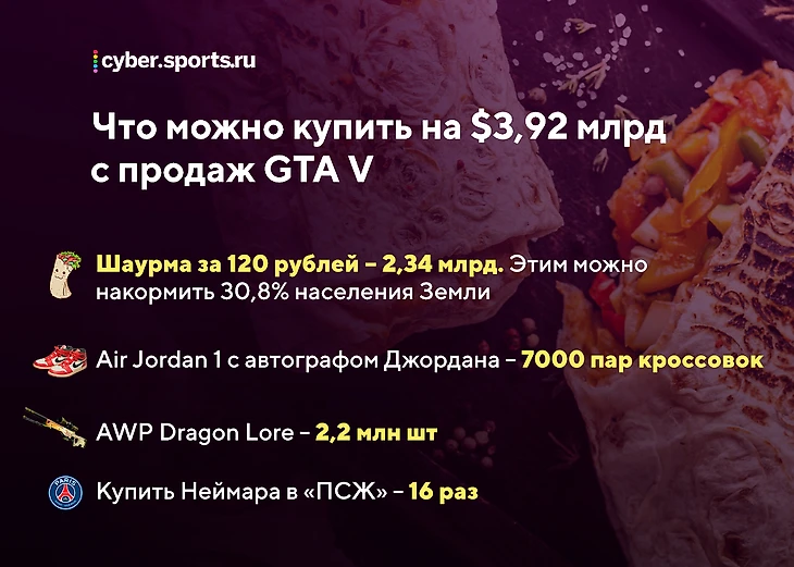GTA 5 принесла создателям $3,9 млрд. На эти деньги можно купить 16 Неймаров, 327 Bugatti и килотонны шаурмы