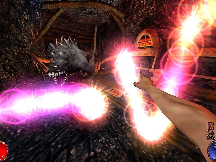 Ни на что непохожая механика магии – самый сильный аргумент к перепрохождению. Заклинания создаются при начертании мышью магических рун в определённой последовательности. Всего в игре 20 рун, а для заклинания используются от 2 до 4. Всего есть десять кругов магии, открывающиеся по мере прокачки отвечающего за это навыка. Каждый круг открывает от 4 до 6 новых заклинаний. Но каждый раз рисовать руны тут необязательно, есть возможность запомнить до трёх заклинаний одновременно. Играть за мага тут интереснее всего ещё и потому, что воин и вор тут невыносимо скучны. А вот шмальнуть в мумию молнией или огненным шаром это да, это уже веселее!