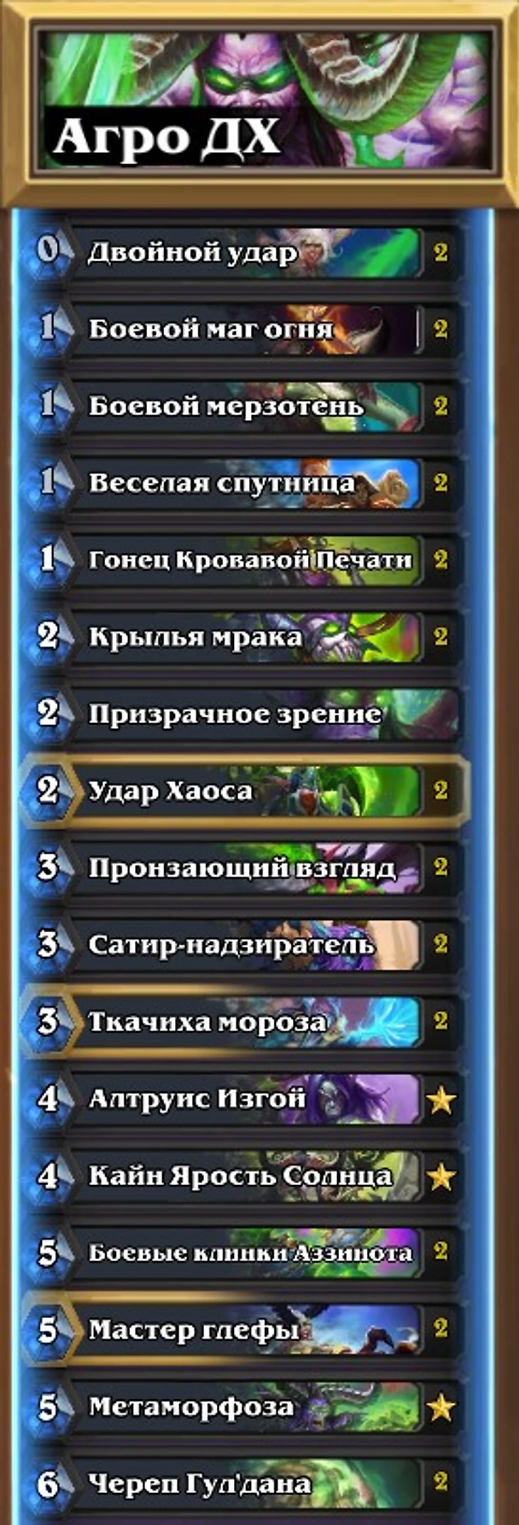 Думаете, сейчас я посоветую вам сборку с «Жрицей Ярости», с помощью которой вы будете всех разваливать на шестом ходу? Так вот, к сожалению, уже как неделю эта, казалось бы, имбалансная карта не актуальна. Почти все современные сборки Демонхантеров — агро-сборки, рассчитанные на быстрое убийство противника с возможным камбеком в виде «Черепа Гулдана» и «Метаморфозы».