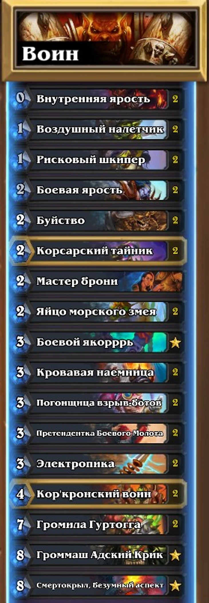 У Демонхантера хорошие матчапы почти со всеми колодами, кроме Воина. Но вы можете переиграть и его. Следите за пиратами противника и пытайтесь предугадать наличие «Рискового шкипера» в руке оппонента. Эта карта всегда сможет легко зачистить ваш стол, поэтому атакуйте умно, не выставляя всю руку. Также я советую муллиганить «Веселую спутницу» и «Ткачиху мороза». Веселая спутница позволяет добавить хп существу, что защищает от пиратского АОЕ. Ткачиха мороза может заморозить лицо противника, не позволив ему достать пирата из колоды. А уж поверьте, у Воина большие шансы замуллиганить пушку.