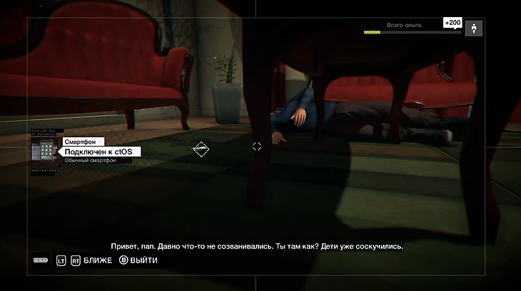 Ubisoft добавила действительно страшную историю для всех, кто живет отдельно от родителей – Эйден Пирс взламывает камеру в одном из домов и видит лежащего на полу пожилого мужчину. На его телефон пришло сообщение от сына: семья готовится к Рождеству, зовет дедулю праздновать вместе и уверяет его, что он не надоедает им своим присутствием. Похоже, мужчина скончался, так и не услышав приглашение сына.