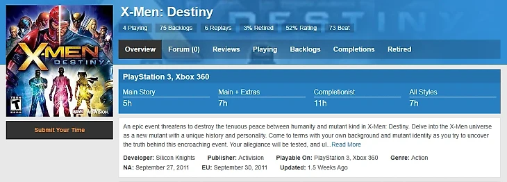Самая короткая игра в моем сегодняшнем списке – X-Men: Destiny. Эту игру не так просто достать (копии игры были отозваны по решению суда), но я прошел ее в свое время на Xbox 360 и удивился ее скоротечности.