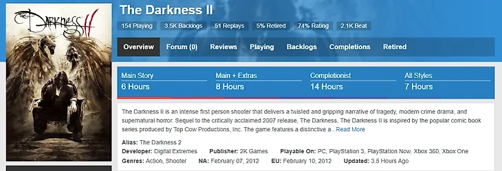 The Darkness II – отличный способ скоротать вечер. Проходится игра примерно за 6 часов и оставляет после себя хорошие эмоции. Рекомендую.