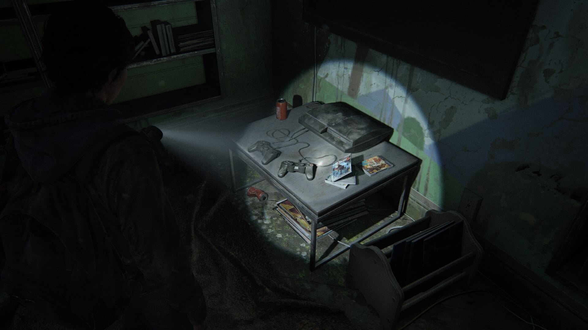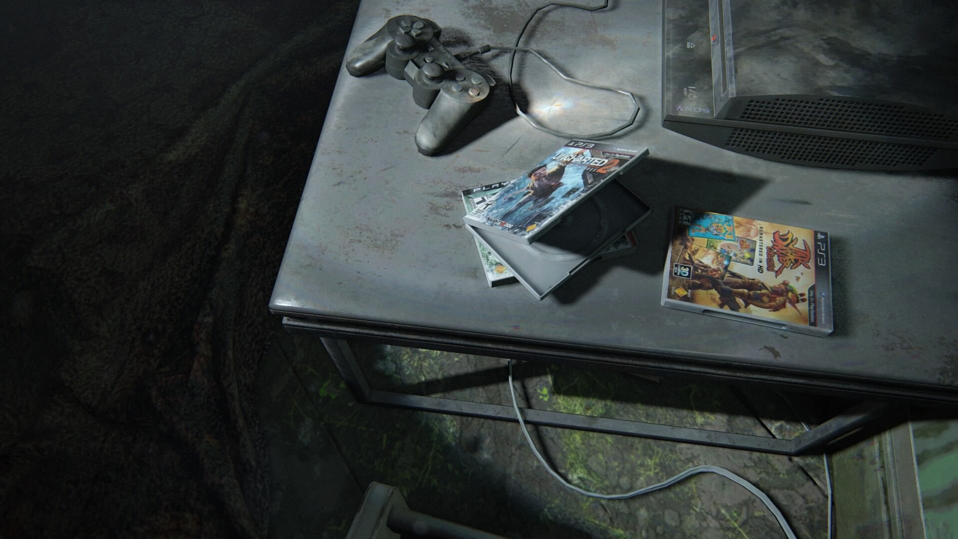 По сюжету TLOU, апокалипсис случился осенью 2013 года – в этой временной линии PS4 не успела выйти, так что в заброшенных домах встречается только консоль предыдущего поколения, PlayStation 3. Ее можно увидеть в нескольких домах, но в первые часы она встречается в наиболее привлекательном комплекте. К ней подключено два геймпада, а из игр на столе лежат Uncharted 2: Among Thieves и Jak & Daxter Trilogy – обе разработаны Naughty Dog.