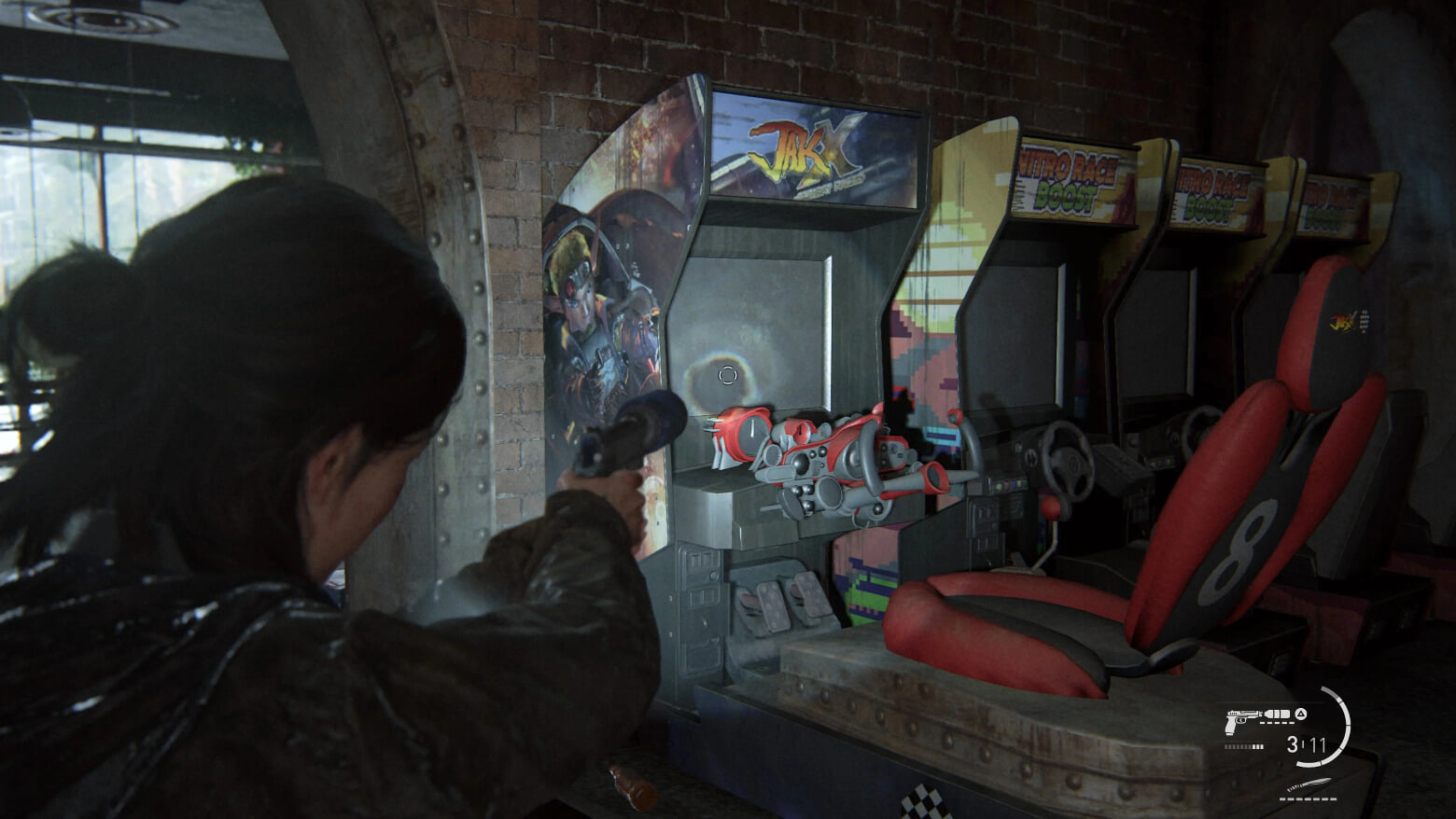 Последняя отсылка к серии платформеров, которую так любят вспоминать Naughty Dog. В реальности игры Jak & Daxter выходили только на PS2, но во вселенной The Last of Us была и аркадная версия. Автомат с гоночной аркадой Jak X: Combat Racing можно найти в заброшенном аркадном центре в главе «Затопленный город».