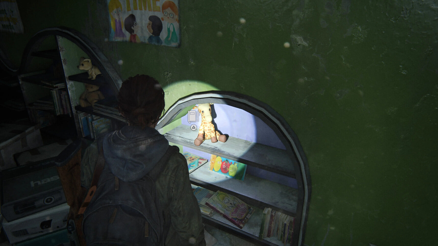 В том же месте есть игрушка, вызывающая у Элли сильную ностальгию. С жирафами связана одна из самых запоминающихся и красивых сцен первой The Last of Us – о ней Элли вспоминает, когда делает запись в дневнике.