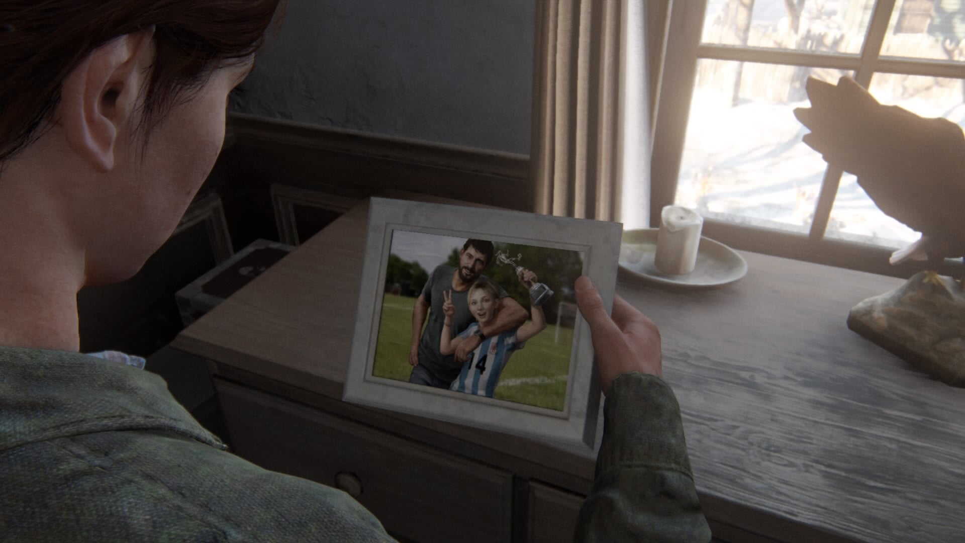Очень старый снимок еще молодого Джоэла с Сарой, только что получившей награду за футбольное достижение. Тот же самый снимок Элли сберегла для Джоэла в первой игре.