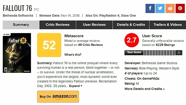 Нет, я не буду про нее ничего говорить, вы сами все знаете. Сотни статей, видеообзоров, и гневных отзывов, оставят этот позор на Bethesda навсегда. Чего только стоят оценки на Metacritic