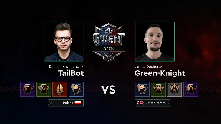 В первом матче дня встретились Дамьен «TailBot» Кажмерчак (Польша) и Джеймс «Green-Knight» Дочерти (Великобритания). Поляк считался явным фаворитом не только статистически: голоса в твиттере Gwent Masters за него отдали 78% зрителей.