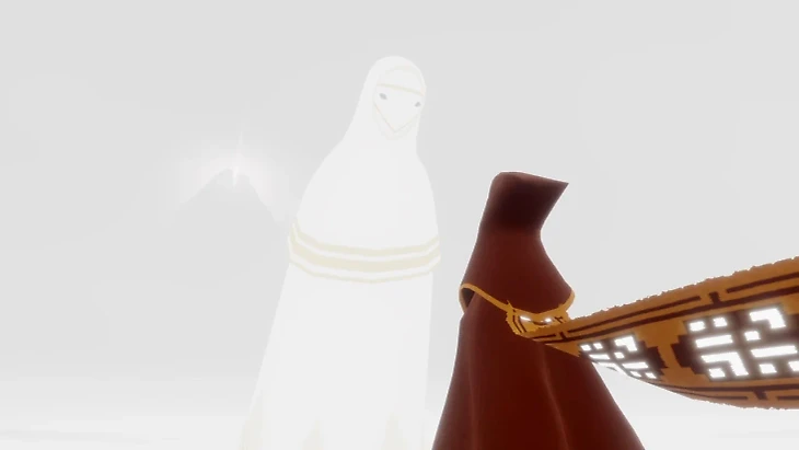Для зарядки этой магической силы нам нужно взаимодействовать с тканью. В этом весь геймплей игры. Дойти от точки А в точку Б. И в этом моя основная проблема с Journey. Тут слишком мало от игры. И это нужно понимать, подходя к Journey. Играть тут особо не во что. Это аудиовизуальное произведение, где самую важную роль играет наше с вами восприятие. Вся игра держится на хрупком понятии атмосферы.