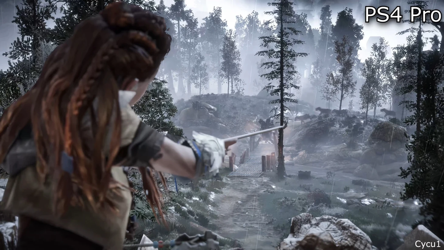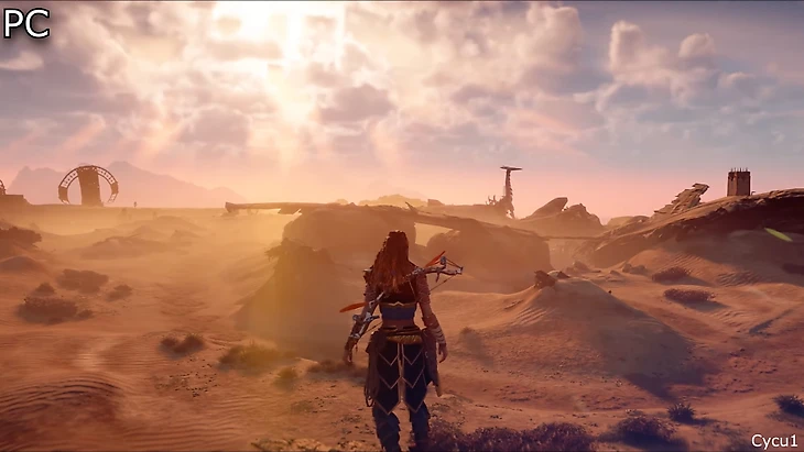 В ПК-версии Horizon Zero Dawn поработали над графикой – добавили динамическую растительность, поддержку сверхшироких и 4К мониторов, улучшили отражения, а также разблокировали частоту кадров. Ютубер Cycu1 сравнил улучшенную графику с PS4 Pro.