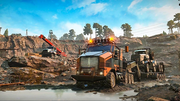 Наконец, последняя моя находка: SnowRunner. Все предыдущие игры создавали сложность намеренно, здесь же она будто вышла из хаоса и захватила власть над реальностью сама. Против вас все – от физики до интерфейса, и ни один из этих фронтов не выдает за собой чьей-то воли. Игра про растаскивание грузов на грузовичках, первые несколько часов которой вы будете ездить в основном не на том, не туда, и не за тем (потом тоже, но уже не по незнанию и чертыхаясь, а по своей воле и из желания щегольнуть). Интерфейс сказал, что надо забрать контейнер с поляны? Лучше притащить вездеход и автокран (два разных мехоса, но можно и произносить с интонациями кота Матроскина), что-то здесь нечисто. Ручной тормоз и управление лебедкой на одной из раскладок управления это одна и та же кнопка, путь в горку будет долгим. Поехать с утра в ближайший колхоз с грузом, утопить его в болоте за сто метров до цели, вернуться с тягачом посерьезней, и встретить закат там же, колесами вверх, без топлива и без надежды, в полном смирении? Мог ли этот год дать более подходящую видеоигру.