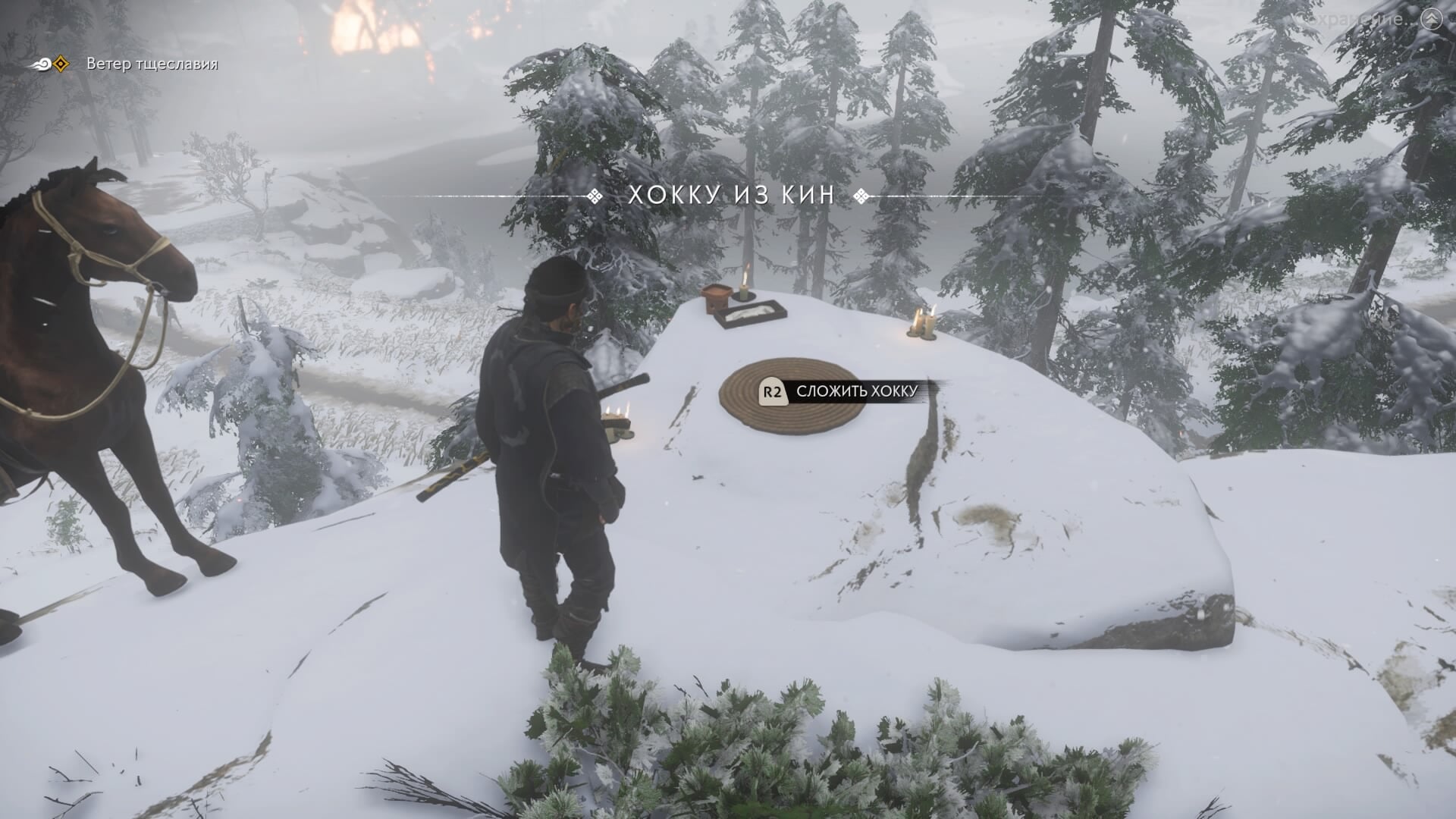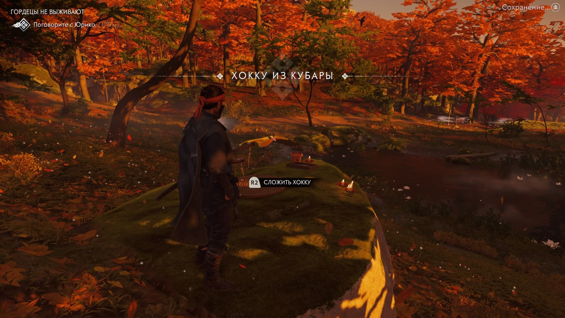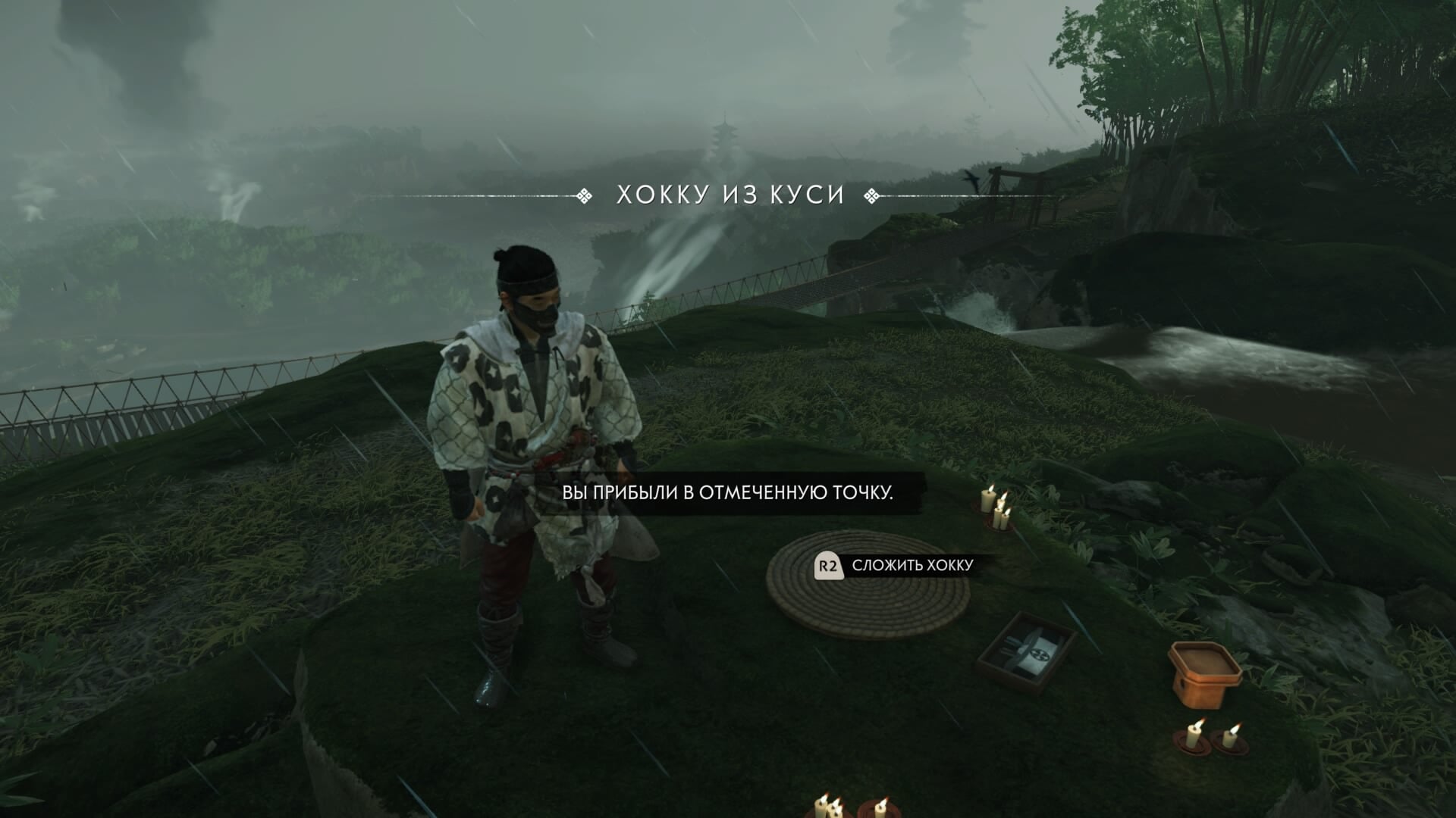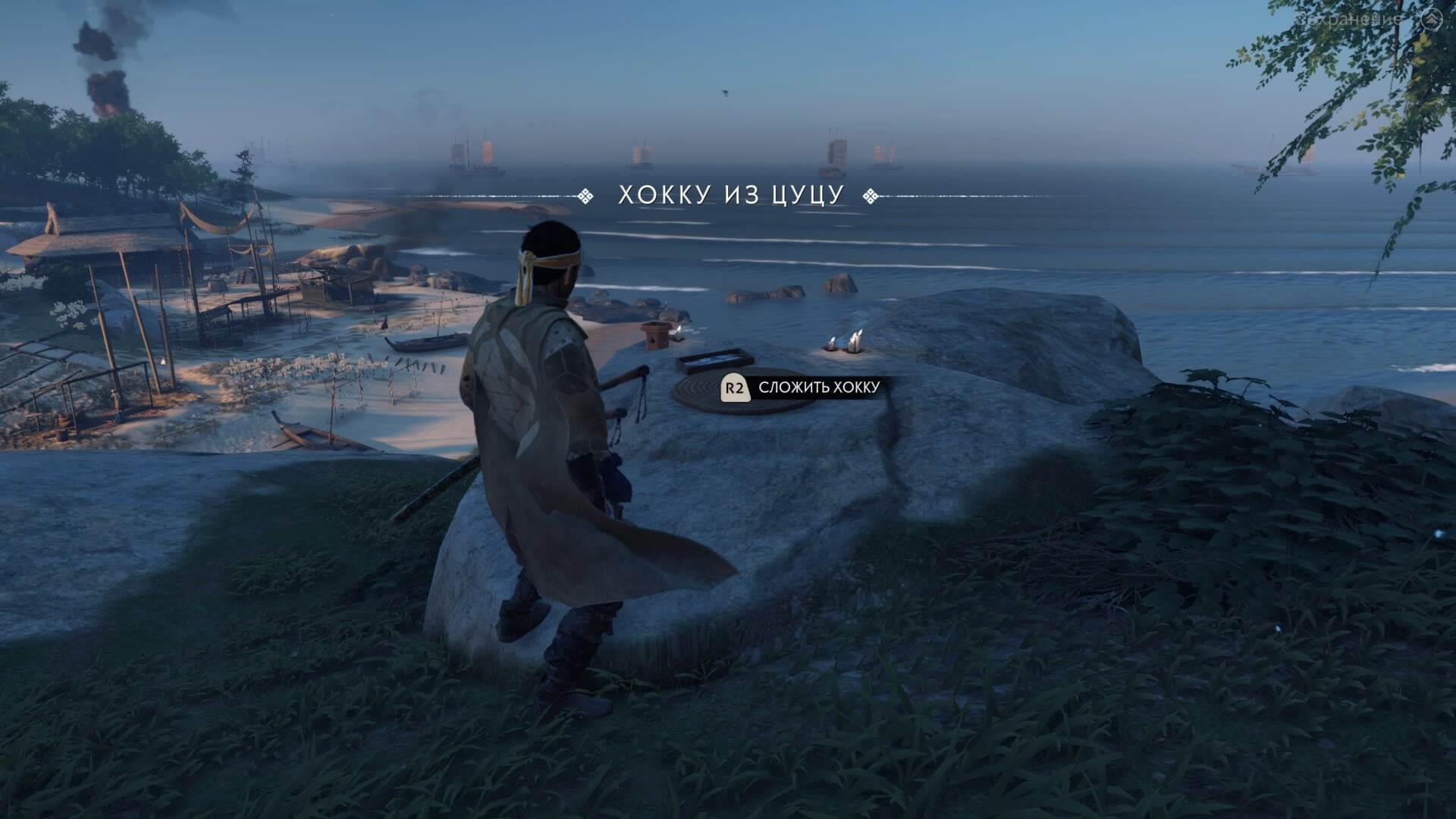 Хокку в Ghost of Tsushima – один из видов активности, которой можно заняться в живописных местах Цусимы. Места для сочинения хокку обычно бывают на плоских камнях, к ним героя приведут желтые путеводные птицы. Каждое хокку открывает уникальные декоративные повязки для Дзина. Для получения бронзового трофея необходимо сложить все хокку.