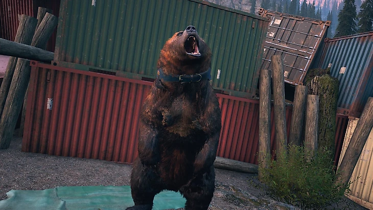 В Far Cry 5 появилась возможность завести компаньона-медведя, который не имеет никакого отношения к русским – можете прятать ушанки. У Чизбургера грустная судьба – его мать застрелили, когда он был совсем маленьким, и его спасли братья Фаулер. Они выкормили медвежонка из бутылочки и построили дом в центре «К.Л.Ы.К.», где он быстро стал локальной знаменитостью.