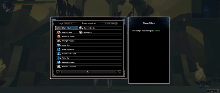 Но есть другие способы прокачки. Это эссенция. Её можно тратить на прокачку перков персонажа. Это пассивные улучшения, которые помогут подобрать нужный вам стиль игры. Это может быть увеличение наносимого урона, регенерация здоровья, повышение выносливости и её регенерации и многое другое. Эта прокачка довольно интересная. Интерес вызывают как сами перки, например, возможность построить билд на увеличении урона после получения урона от врага (что не сильно поможет на некоторых ваншотающих боссах), так и сама механика этой прокачки.