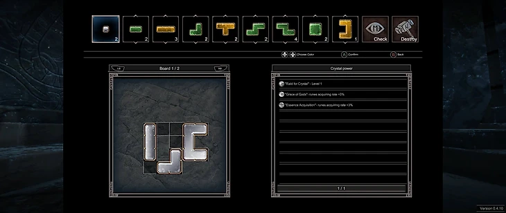 Не считая тотемов. Это такой внутриигровой тетрис. Задача – сложить из цветных фигур, которые можно изредка подбирать с врагов или находить в потайных комнатах, определённую фигуру. Собрав тотем, вы получаете бафф этого тотема и плюсом – усиление от вставленных предметов. Цвет определяет характеристику. Зелёный – здоровье, синий – защита, красный – урон, и так далее. Это усиление так же не сбрасывается после смерти, но получить его сложнее, чем очередной уровень. Со временем откроются новые тотемы, которые дают доступ к нарядам для героинь.