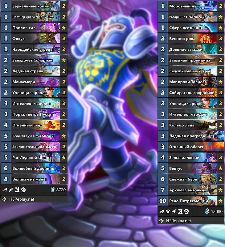 Это не самая сильная колода в списке, зато очень веселая – три карты с Резонансом, куча заклинаний и Леди Лиадрин, чтобы заполнить руку. Несколько партий с этой колодой точно можно затащить за счет эффекта неожиданности – соперники не будут знать, что еще лежит у вас в колоде, поэтому не смогут играть вокруг этого.