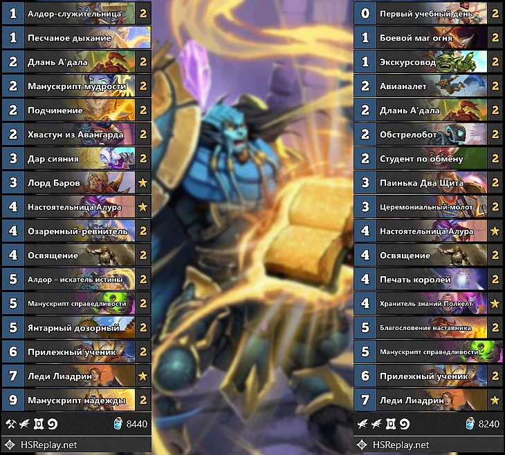 В предыдущей мете вы могли встречать Паладинов на манускриптах – это тир-5 колода по мнению Tempo Storm. В «Некроситете» Утеру дали больше карт для зачистки стола и Дар сияния – мощное двухмановое заклинание, с которым даже сила героя на 4 ход выглядит неплохо.