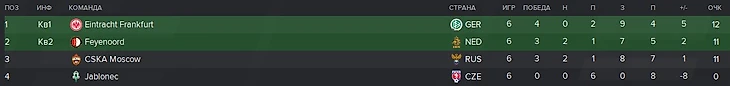 ЦСКА опять налажал в Лиге Европы. Правда, в группе с «Айнтрахтом», «Фейенордом» и «Яблонцом» набрано 11 очков, но и их не хватило. Обе лички с «Фейе» закончились 1:1, и все решила разница голов.