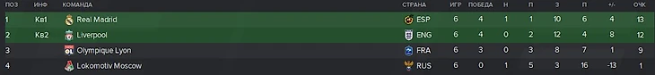 «Локомотив» был не менее жидким. Группа оказалась куда жестче – «Реал», Ливерпуль» и «Лион». Москвичи набрали лишь одно очко – в последнем туре против «Реала», когда матч ничего не решал (кстати, угадайте, кто забил Мадриду). 4-е место, разница мячей -13.
