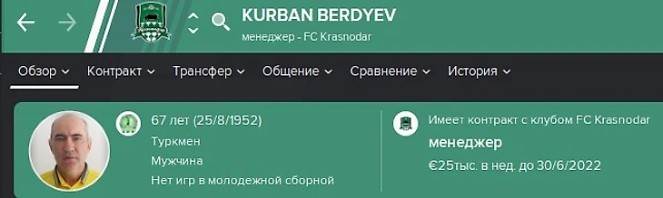 В команду пришел Юрий Калитвинцев (?!). Уволили за 16 дней. В них «Краснодар» обыграл «Ростов» и сыграл 2:2 с «Ромой». Из заголовка вы уже в курсе, кто стал новым боссом. Компьютерный интеллект не понимает, что Бердыев ставит абсолютно другой футбол и в реальности в «Краснодаре» его никогда не будет. ИИ просто смотрит на цифру общего скилла коуча, а тут из свободных Курбан Бекиевич подходил идеально. И стоит признать: Галицкий не прогадал.