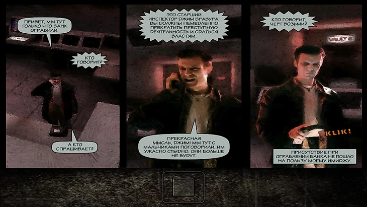 Классный стилистический прием: большинство сюжетных сцен показано нуарными комиксами. Тут Remedy Entertainment наверняка сэкономили деньги на анимации персонажей и озвучке, но в контексте игры это выглядит уместно. При прохождении мне сперва захотелось перечитать томик «Города грехов» Фрэнка Миллера, а затем я понял, что в таком виде был бы интереснее и «Макс»: лучше пролистать комикс на сотню страниц, чем разбавлять историю однообразными перестрелками. Возможно, в 2001-м они действительно развлекали и доминировали по впечатлениям, но сейчас – наоборот.