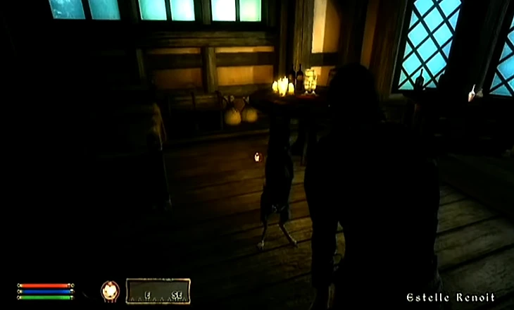 Рассказав торговке книгами Эстелль Ренуа шутку, протагонист вместе с ней поднимается наверх, где она знакомит его со своим псом Громом. Эстелль практикуется в стрельбе из лука, и это получается откровенно плохо, выпивает зелье, повышающее навык стрельбы, и у нее улучшается точность – кто из вас на этом моменте в 2005-м не швырнул деньги в монитор?