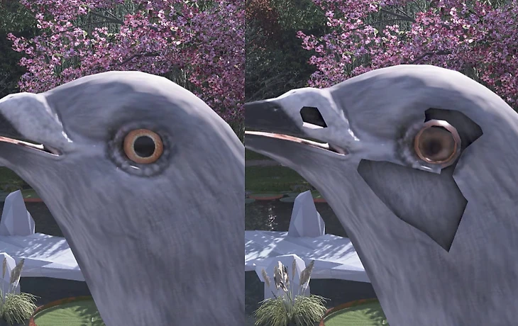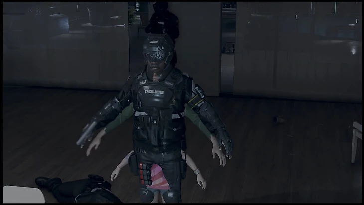 В игре используются две текстуры глаз (похоже, для дальности прорисовки). Если заглянуть под маску полицейского, у него будет проработанное лицо. Под обычными глазами спрятаны текстуры с низким разрешением.