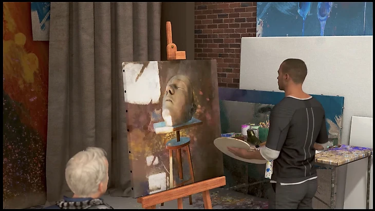Маркус – действительно фантастический художник. Ему потребовалось всего 10-12 мазков, чтобы чистый холст превратился в две разных картины! А ведь он даже не касался холста кисточкой. Это круто даже по меркам андроида.