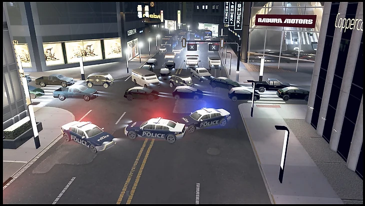 Снизу образуется пробка из-за полицейских. Они тоже лоу-поли, но напись «Police» отлично читается.