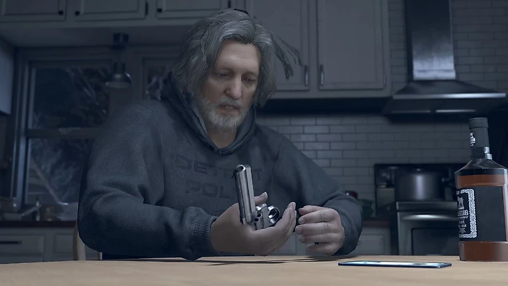 Одна из концовок приводит к смерти Хэнка. Он остается на кухне, а Коннор покидает дом и слышит выстрел – но, как и в случае с семейным насилием выше, разработчики не сделали анимацию для этой сцены. Вместо этого Хэнк просто сидит с оружием в руках.