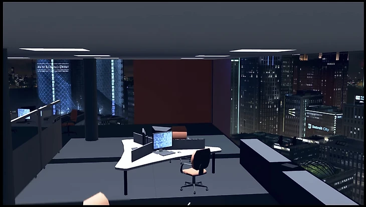В здании напротив можно увидеть офисы. Это не натянутые на стекло текстуры, их действительно смоделировали, пусть и в лоу-поли. Зачет за внимание к таким мелочам.