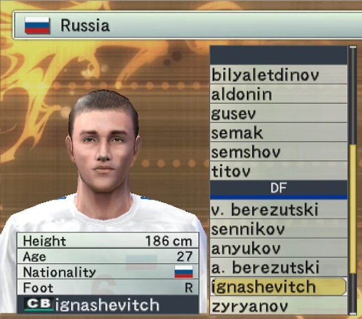 Со сборной все в порядке. Имена полностью лицензированы и совпадают с реальными. Единственная недоработка – Зырянова записали как защитника. Уникальных лиц нет, но постарались придать кое-какое сходство. Например, Овчинников с длинными волосами и бородой, как в жизни. Чернокожих Онопко (как в FIFA 2001) не обнаружено.