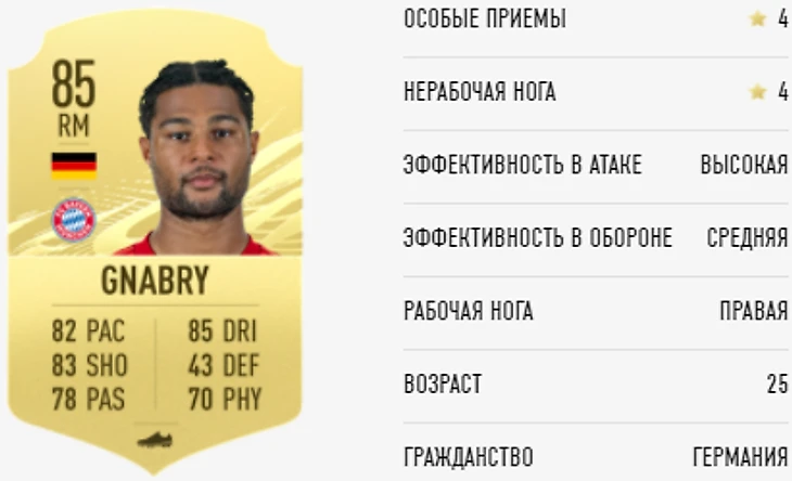 Серж – тот игрок, от которого отказались в не самом звездном «Арсенале», посчитав недостаточно хорошим для них. Он не сдался и прошел через «Вест Бромвич», «Вердер» и «Хоффенхайм», чтобы сделать себе такое имя, которому многие теперь завидуют. В решающих матчах Лиги чемпионов он также был одним из ведущих игроков Баварии, отчего повышение рейтинга на +1 кажется смехотворным. Рейтинг 86 выглядел бы гораздо уместнее.