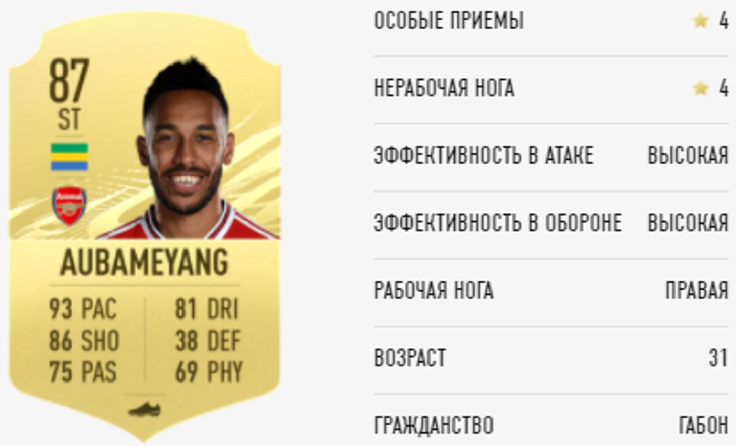 Рейтинг Обамеянга не сразу бросается в глаза, поскольку его показатели мало изменились и, можно сказать, их стандартно подрезали с учетом возраста габонца. Проблема в том, что если следить за АПЛ, то становится понятно – рейтинг 88 был куда лучше и он точно не заслужил его потерять, поскольку стал лидером «Арсенала» и второй сезон подряд положил 22 мяча в регулярном первенстве.
