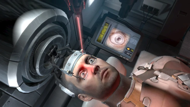 Наверняка у главного героя Айзека Кларка стальные нервы, потому что в одной миссии Dead Space ему придется самому провести операцию на собственном глазу. После битв с толпами военных и некроморфов он найдет машину для считывания памяти, и вам ничего не останется, кроме как войти внутрь и провести операцию на собственном глазу.