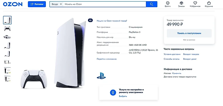 Стоимость консоли начинается от 40 990 рублей, как и рекомендовала Sony, но ее нет в наличии.