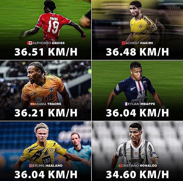 А самые быстрые игроки топ-лиг в прошлом сезоне:
