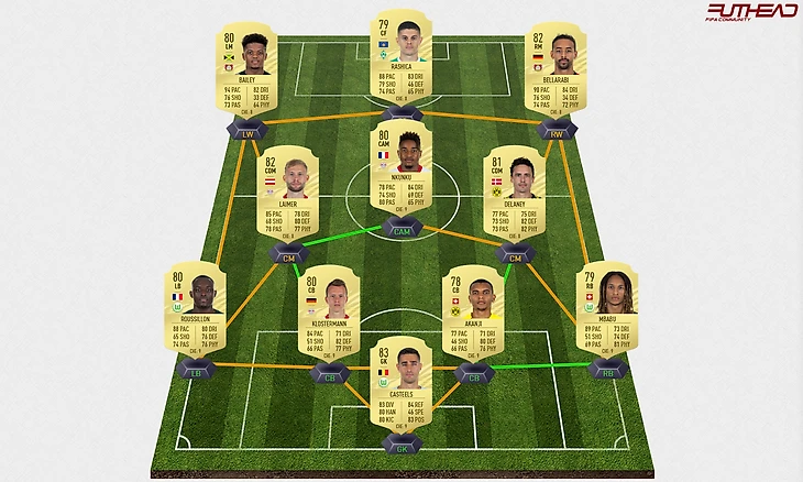 Если вы заходите в FUT и видите, что Забитцер «к вам не поедет», то француз Нкунку, имеющий хорошие сбалансированные скиллы, станет тем самым начальным выбором на этой позиции. С ним хорошо все, кроме посредственного удара. Который, впрочем, усиливается крайне просто.