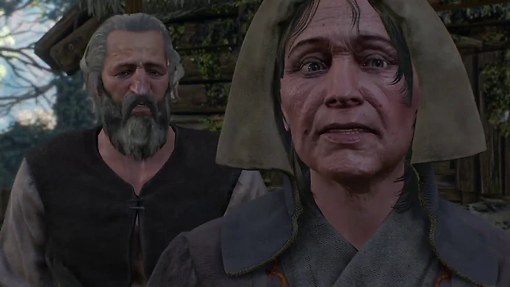 3. В третьем варианте, где Геральт пощадит стариков и соврет травнику, бабушка умрет от голода, и ведьмак застанет плачущего супруга над ее трупом.