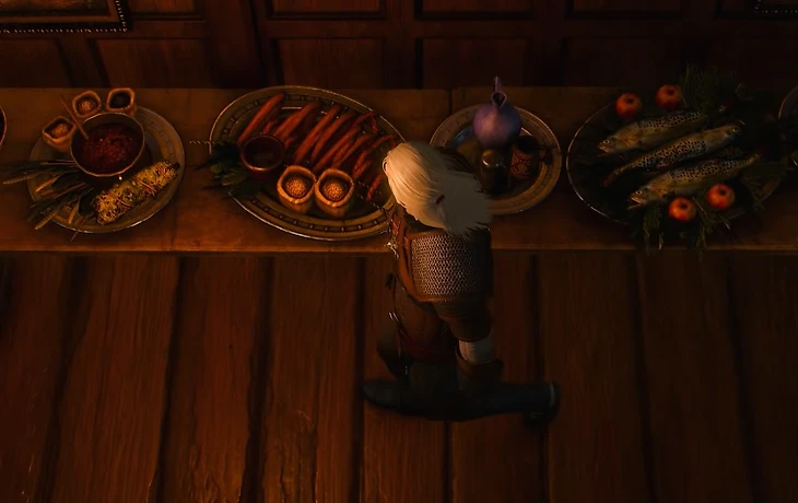 • От аукциона можно отказаться ради уникальной кат-сцены – пока все будут участвовать, Геральт наестся и напьется от души. Но лучше не пропускать уникальные предметы, потому что они точно окупятся если не золотом, то историями.